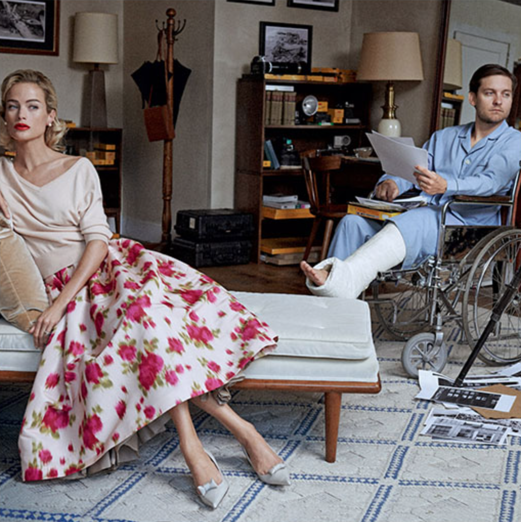 Hitchcock’s sartorial focus, in addition to the beautiful Hitchcock blondes cast as leading ladies, make his films an obvious source for fashion inspiration. To celebrate Tobey Maguire’s role as Nick Carraway in the upcoming Great Gatsby film by Baz Luhrmann, Vogue featured Maguire and model Carolyn Murphy in an editorial inspired by The Rear Window. Titled, Window Dressing, the editorial was photographed by Peter Lindbergh and featured the 50s-revival fashions that were ubiquitous across the Fall 2013 runways.